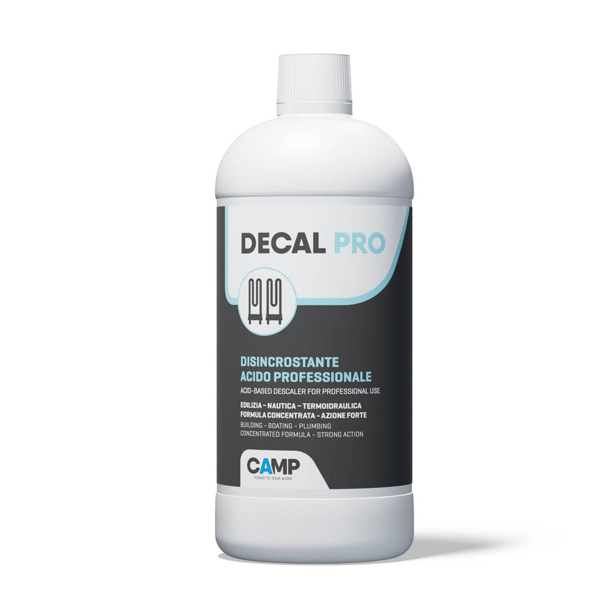 Disincrostante acido tamponato concentrato, per uso professionale, solubile in acqua. Rimuove velocemente incrostazioni di natura calcarea, formazioni saline, residui di malta o cemento, ruggine e in genere tutte le incrostazioni sensibili agli acidi.
